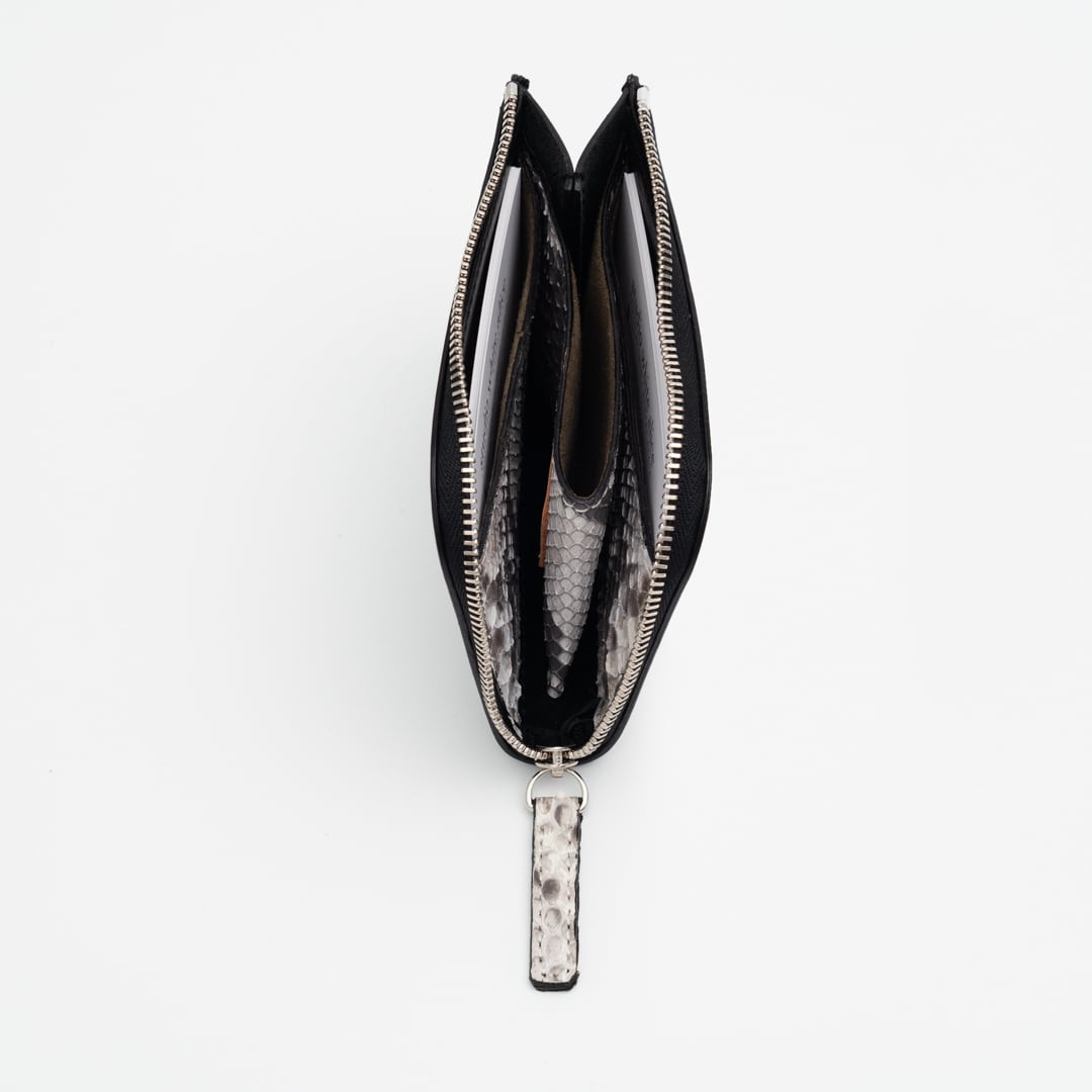ヌメ革×ヘビ革で職人が作成したマチ付き L字ファスナー財布 マチ付き L字ファスナー財布【黒ヌメ×ヘビ革】Hide series(ハイドシリーズ) HS02BK
