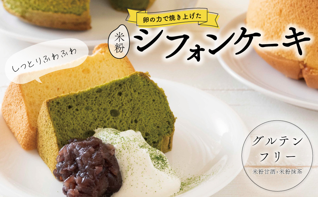 | 容量 | グルテンフリー シフォンケーキセット(直径約12cm) 米粉甘酒、米粉抹茶 各1個 合計2個 |