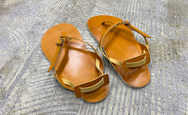 表には栃木レザー、ベルトの金具は真鍮製。軽く返りが良く履き心地も良いサンダルです。