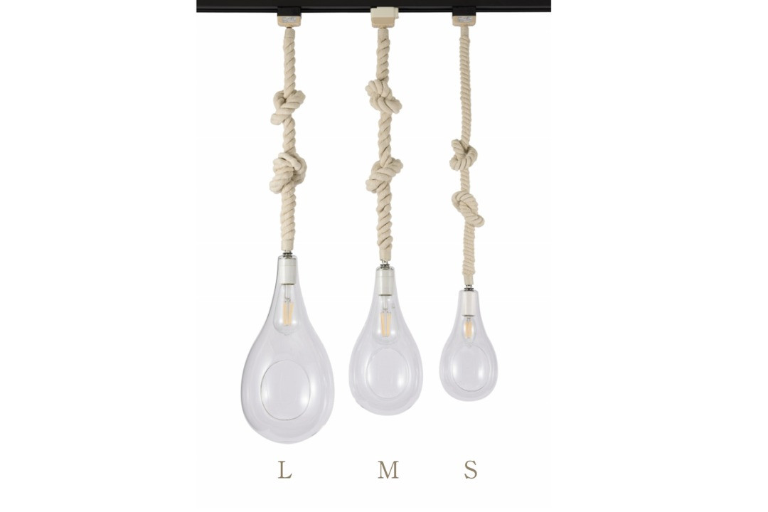 しずく型のガラス、結び目がアクセントになったコットンコード、細かい部分にこだわったおしゃれ照明。