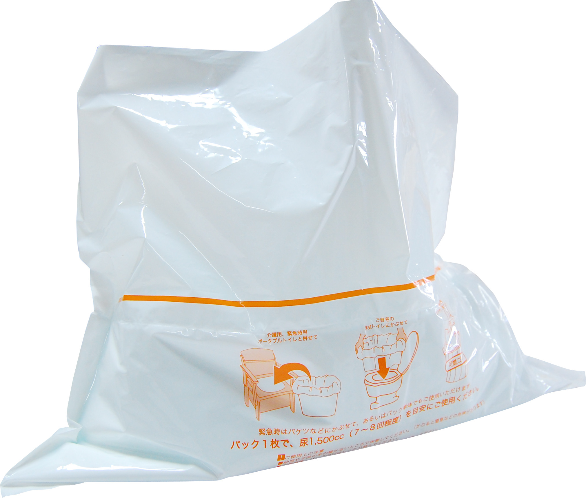 大容量タイプは成人1日分を1枚で吸収凝固できます。ご利用者にも介助者にも優しく便利な使い捨てトイレです。