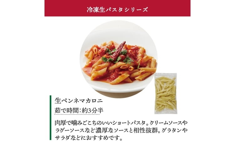 冷凍生ペンネマカロニは乾麺のペンネ同様、万能パスタです。