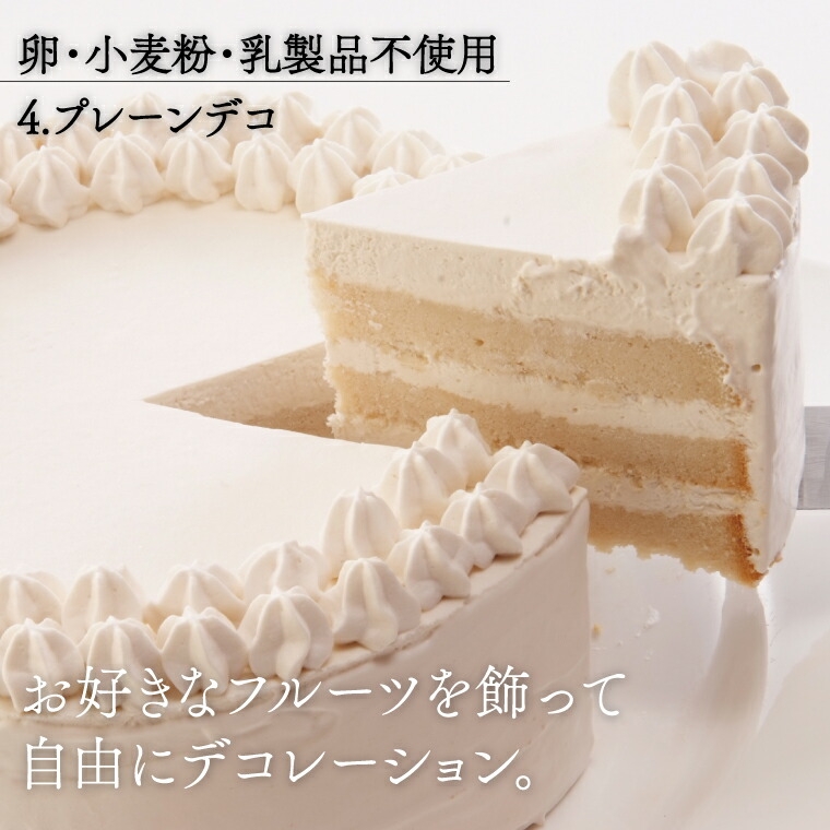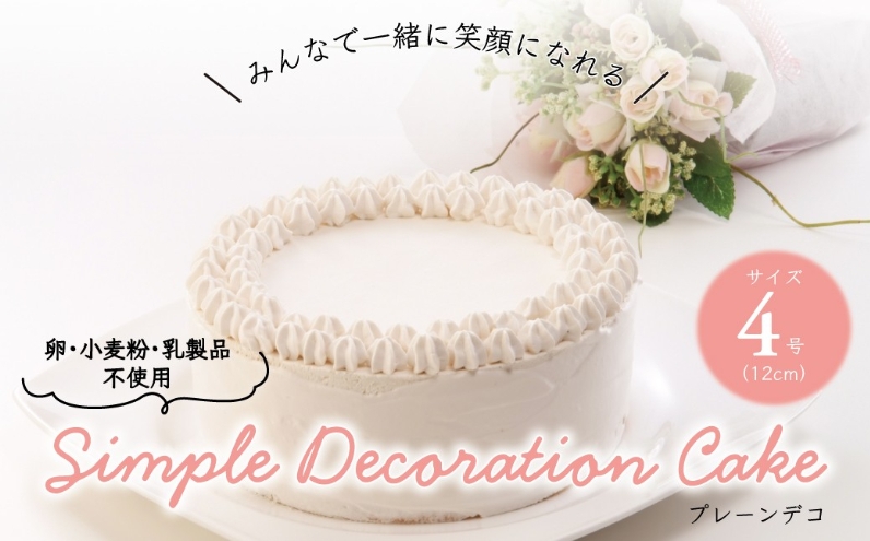 卵・小麦粉・乳製品不使用のプレーンデコ4号(12cm) 〈 プレーンケーキ デコレーション ホールケーキ アレルギー対応 冷凍 ケーキ お菓子 米粉 豆乳 スイーツ 洋菓子 誕生日 お祝い ギフト プレゼント お土産 デザート おやつ 〉 [№5412-0306]