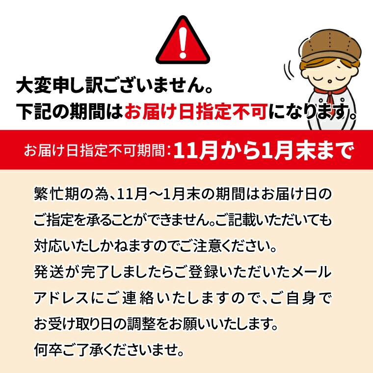 ※お届け日のご指定が下記の期間は記載頂いてもご対応はできません。(11月~1月)