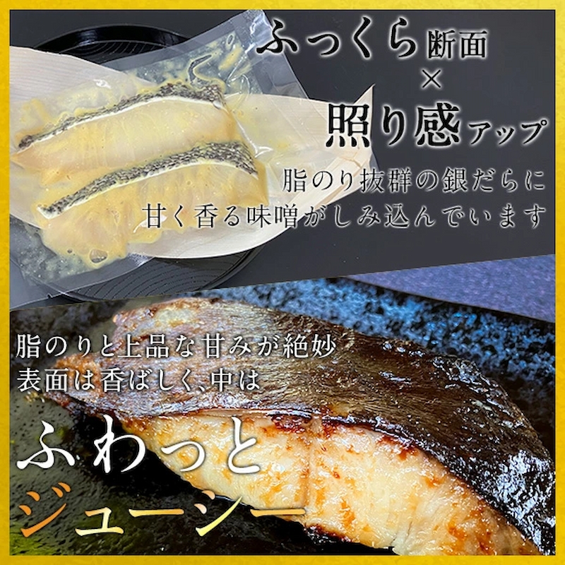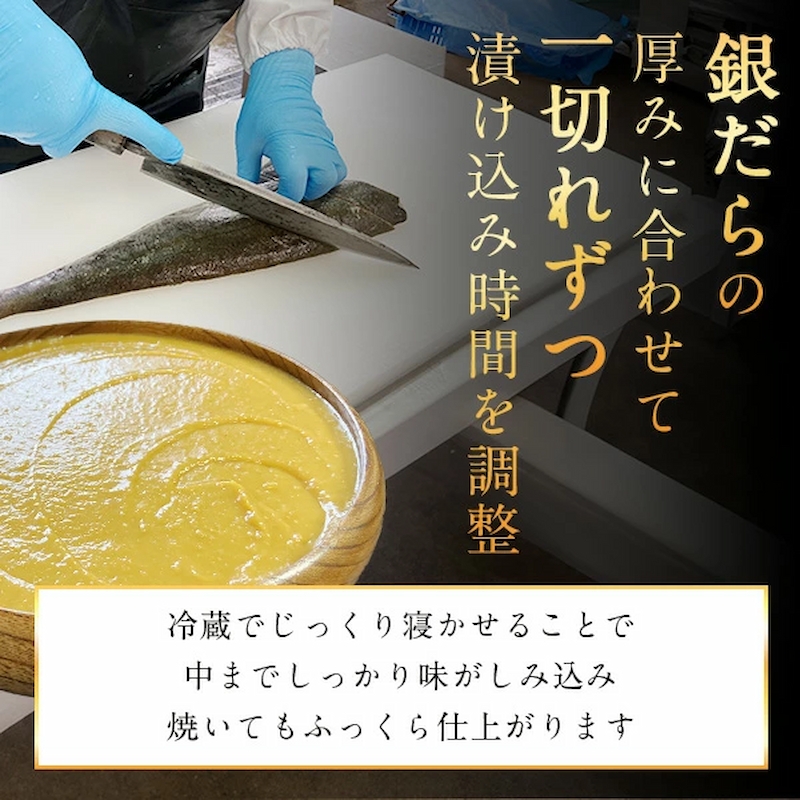 八代自家調合の自慢の西京味噌を使い、漬け込んだ銀鱈西京漬けの厚切り120g×18枚と、尾側の身、切り落としの西京漬け(形が揃わず大小あり)を合わせて約3kgのセットです。