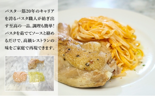 パスタ一筋20年のキャリアを誇るパスタ職人が紡ぎ出す至高の一品。プレミアム生パスタ&骨付きチキンとガーリックソースのセット