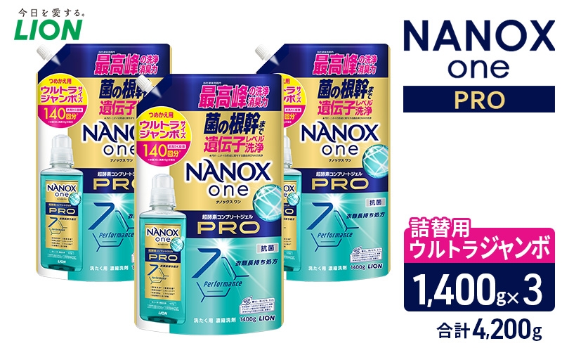 NANOX one PROつめかえ用ウルトラジャンボ1400g×3 合計4,200g ライオン LION 洗濯 洗濯用洗剤 液体洗剤 日用品 消耗品 詰め替え 除菌 消臭 抗菌 ギフト 石鹸 衣類用 セット 市原市 [№5689-2465]