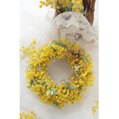 アーティフィシャルフラワー ミモザのリース(Sサイズ)1点【1494313】