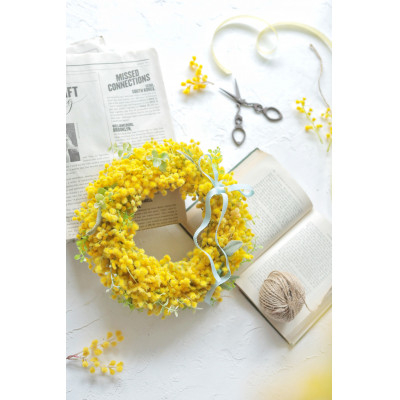 本物のような風合いのアーティフィシャルフラワー(造花)を使ったミモザのリースです。