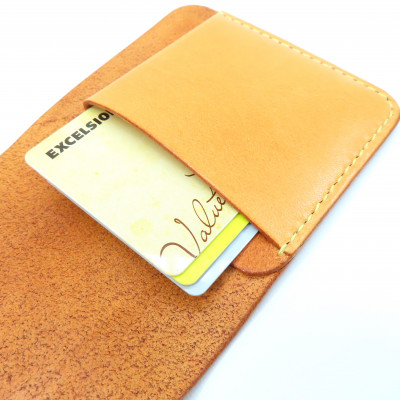 横向きのカードポケットにはカードを3~4枚収納できます。また縫製は全て丈夫な糸を使い手縫いで仕上げてあります。