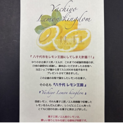 「八千代市をレモン王国にしてしまえ計画!」から生まれた焼き菓子になります。原産地と製造地、そして提供地、全てが菓子工房ノエルです。