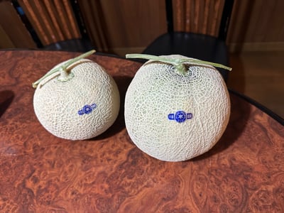 小さいメロンに関しましては、通常のL玉規格(1.4kg以上)のものをお届けいたしておりますが、大きいメロンは5月~9月限定発送の旬の大玉を誤って発送してしまったとのことでした。
