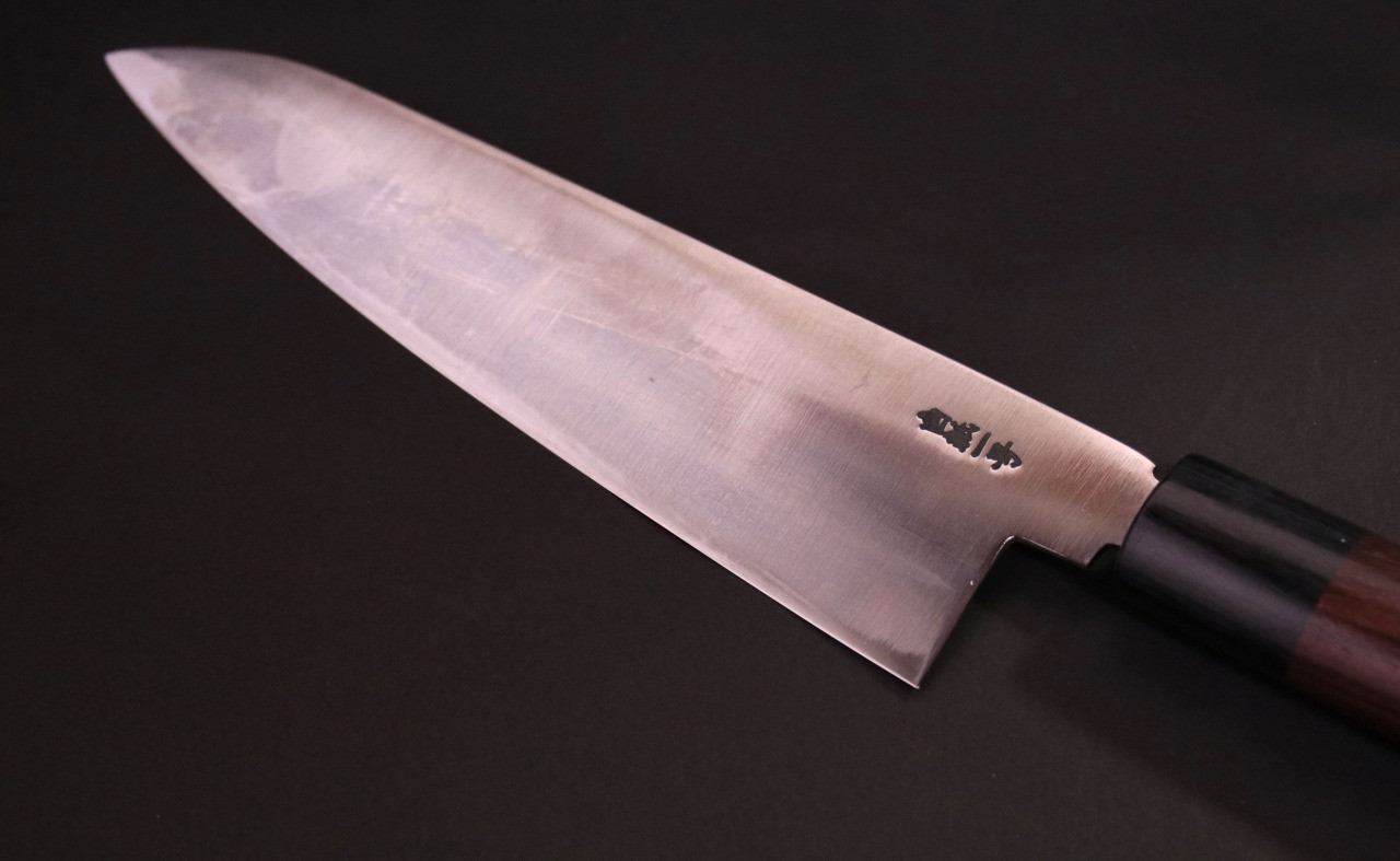 ・牛刀の場合は無垢の鋼を使用している為、シミが出ます。シミに関しては使用上問題ありませんが、上記の事を守って錆にならないようにご注意ください。