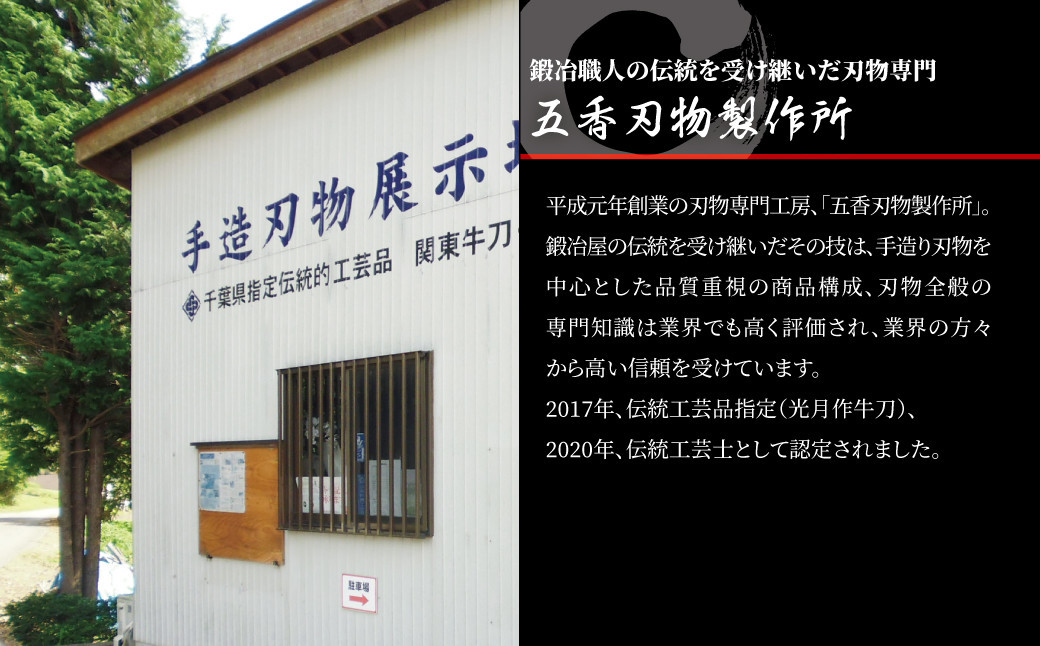 ※2017/11/30経済産業省発表の「伝統工芸品」に五香刃物製作所が制作した牛刀を含む千葉県工匠具に指定されました。