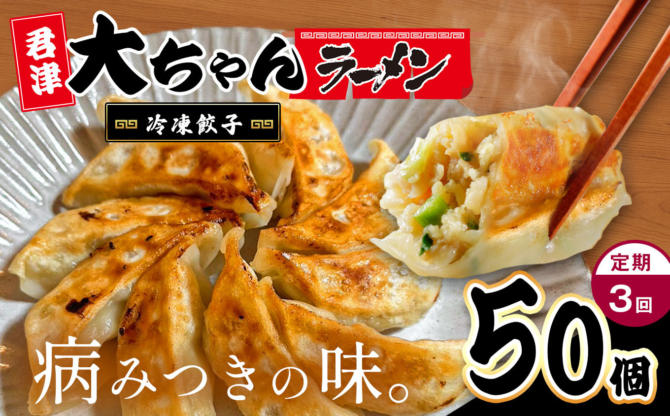 チョイスPayポイントと交換できる品 ほんのり甘いジューシーな餃子 行列 必至 !大繁盛 店 【 定期便 3回 】 オリジナル 冷凍餃子 10人前 50個 | 餃子 冷凍 餃子 惣菜 冷凍 食品 定期 定期便 3回 大ちゃんラーメン 君津 きみつ 千葉県