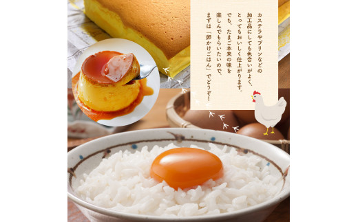 特徴はオレンジ色の黄身の甘みとコクとまろやかさ。卵かけご飯は勿論、卵焼きやケーキの焼き上がりも抜群です!