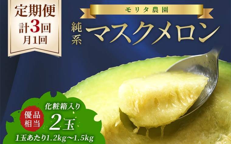 【定期便3ヶ月】純系マスクメロン2玉【通年栽培】