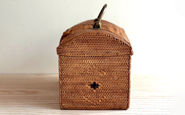 バリ島トゥガナン村の伝統工芸品・アタ製品+真鍮取っ手の組み合わせがオリジナル! BAX-265SIN アタ 真鍮持ち手メディカルボックス(ドット・W24×D17×H18.5)