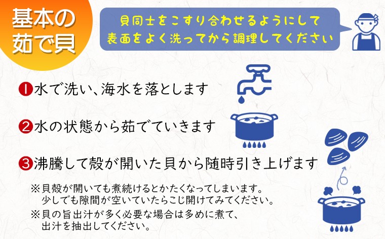 ふっくら肉厚でおいしいお出汁がたっぷり♪ 酒蒸し、クラムチャウダー、味噌汁、パスタ、天ぷらなど、どんな調理にも合う万能食材です!