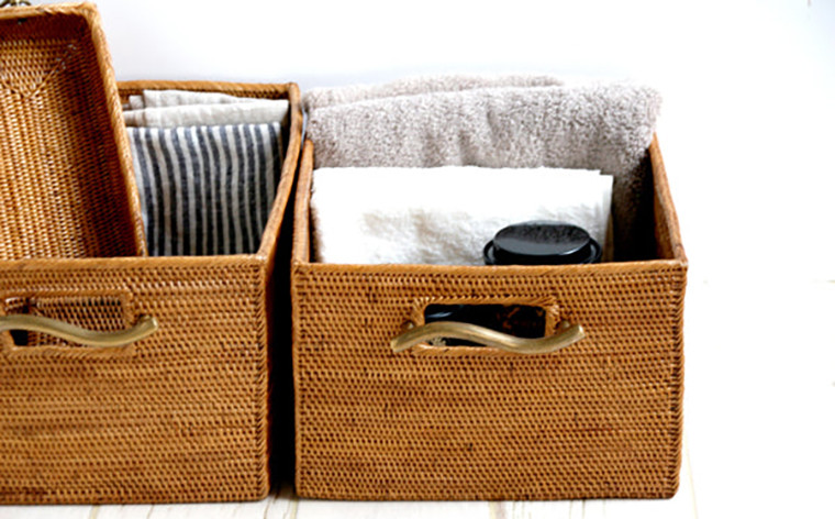 バリ島トゥガナン村の伝統工芸品・アタ製品+真鍮取っ手の組み合わせがオリジナル! BAX-422SIN アタブラスウエーブ取っ手収納ボックス(無地・W22×D30×H15) アタ 真鍮