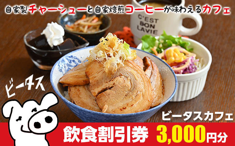 自家製のチャーシューと自家焙煎のコーヒーが味わえるカフェ ビータスカフェ 飲食割引券 3,000円分