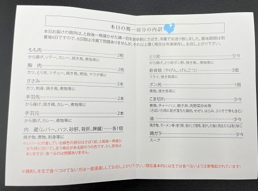 量が多い為1週間鶏三昧になりますが、飽きずに様々な部位を日替わりで楽しんで下さったという大変嬉しいコメントをありがとうございます。