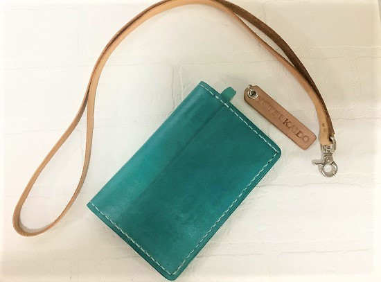 高級本牛革手縫いの障害者手帳入れ+ネックストラップ / 本牛…