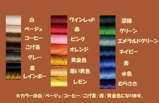 また扱っている糸はワックスを染みこませてあるものを使っており、作成終わったあとは余分なワックスをブラシで丁寧に落とすことで、糸が少し明るい色に変化するのです。それも制作するにあたっての楽しみの一つでもあります!
