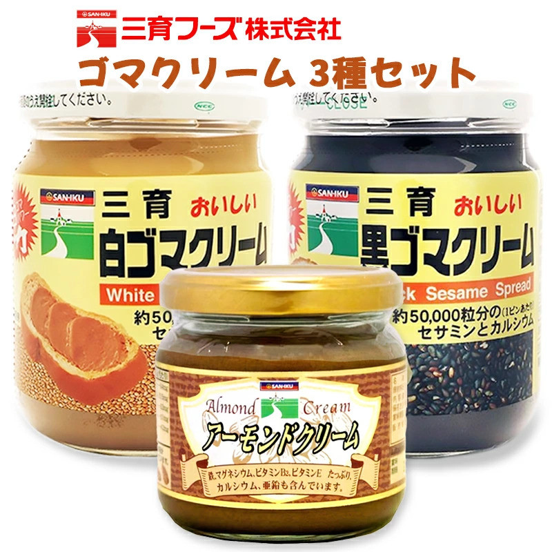 三育フーズ人気のクリーム3種の詰合せ 三育クリーム 3種セット (白ごま、黒ごま、アーモンド) 詰合せ|ごまクリーム 胡麻クリーム ごまペースト ゴマペースト 胡麻ペースト 練りゴマ ねりごま ねり胡麻 白ごま 黒ごま アーモンドペースト [0121ch]