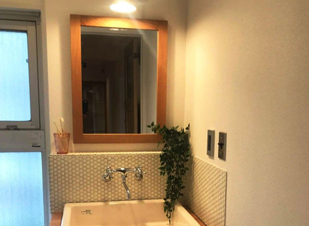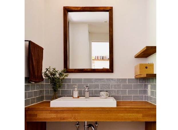 昔懐かしいレトロ調のミラー。木の風合いを生かしつつ現代風にアレンジ。 レトロ調サニタリーミラー