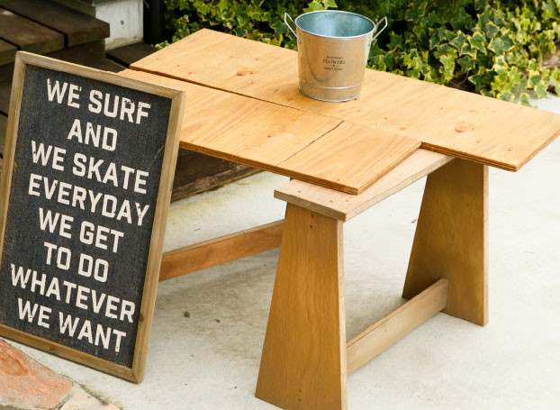 重い家具を置く台なので重量のある物でも大丈夫。見た目よりも万能な作業台です。日曜大工で簡単に作れそうに見えますが、精密な機械で同じサイズに切断するからこそ物を乗せた時にぐらつきが全くなく水平に作れるのです。
