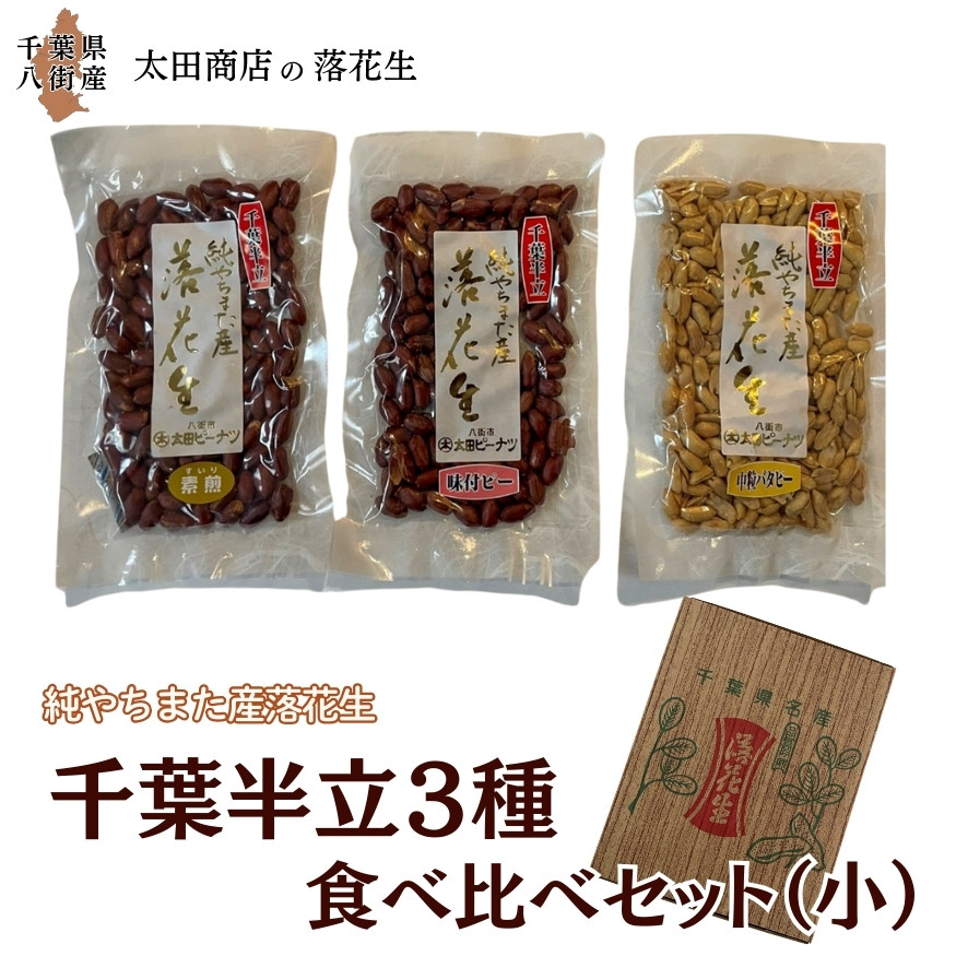 八街産千葉半立を食べ比べ! 素煎り ・ 味付きピー ・ 中粒バタピー