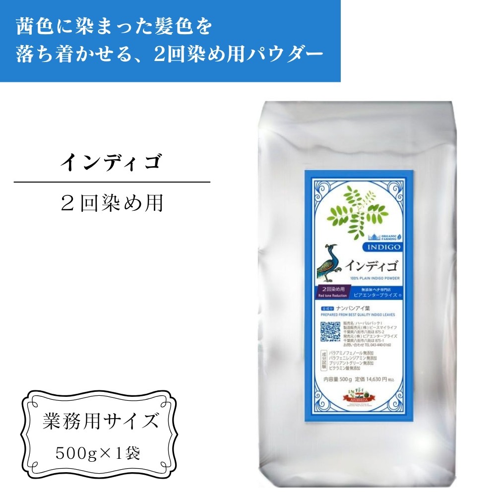 本場インドでヘナを生育から一貫管理し日本で製造 添加物不使用 ヘナ専門店のピア インディゴ 業務用 500g 白髪染め 2回染め用 アーユルヴェーダ ヘアケア スカルプケア ご自宅ケア [業務用サイズ]