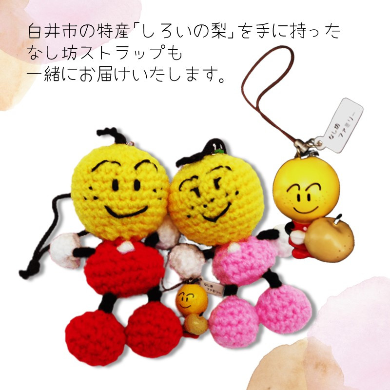 白井市のマスコット「なし坊ファミリー」の編みぐるみセット!なし坊のストラップ付 なし坊ファミリー編みぐるみセット なし坊ストラップ付