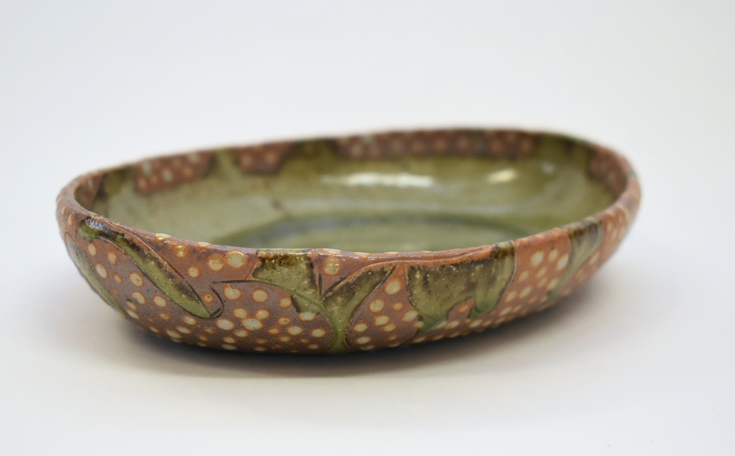 木の灰をメインにした灰釉が醸し出す緑の濃淡が印象的です。