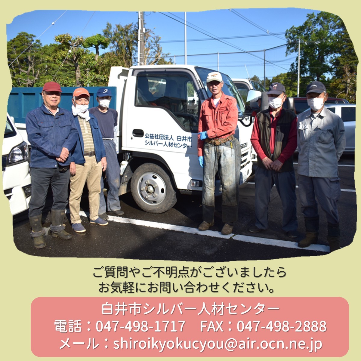 白井市シルバー人材センターのスタッフが行います。経験豊かなスタッフばかりですので、安心してお任せください。