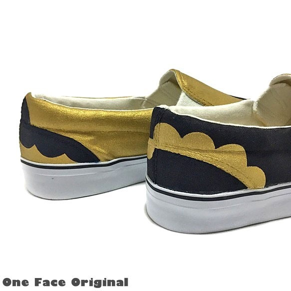 黒地にゴールドのデザインが映える、世界で一足あなただけのスニーカーをお届けします