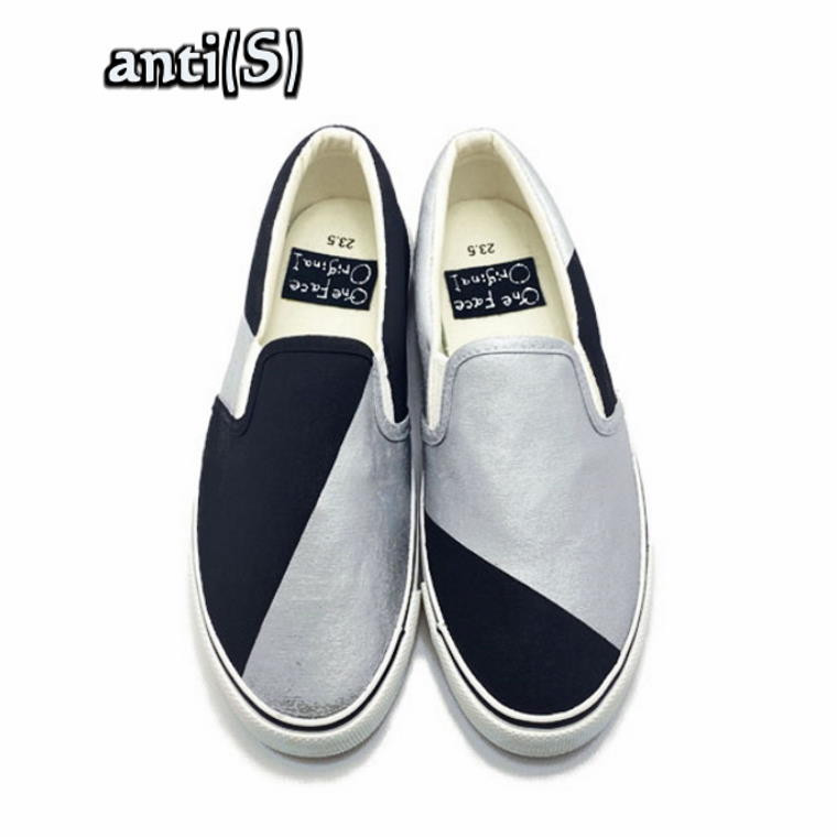 履くだけで気分が上がる♪ 世界で一足あなただけのスリッポン! 手描きスニーカー「anti(S)」シルバー×ブラック ワイズ 2E 22.0~28.0cm【受注制作】
