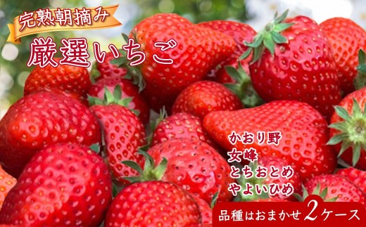 どの品種が届くかはお楽しみ♪ 甘くておいしいイチゴです 【2026年1月中旬発送】厳選完熟いちご 8~18粒 2ケース 朝採り とちおとめ やよいひめ かおり野 女峰 品種おまかせ