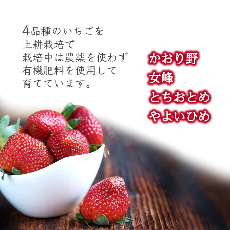 発送時に4品種のうちから良い品種を厳選し、その日の朝収穫した完熟いちごをお届けいたします。