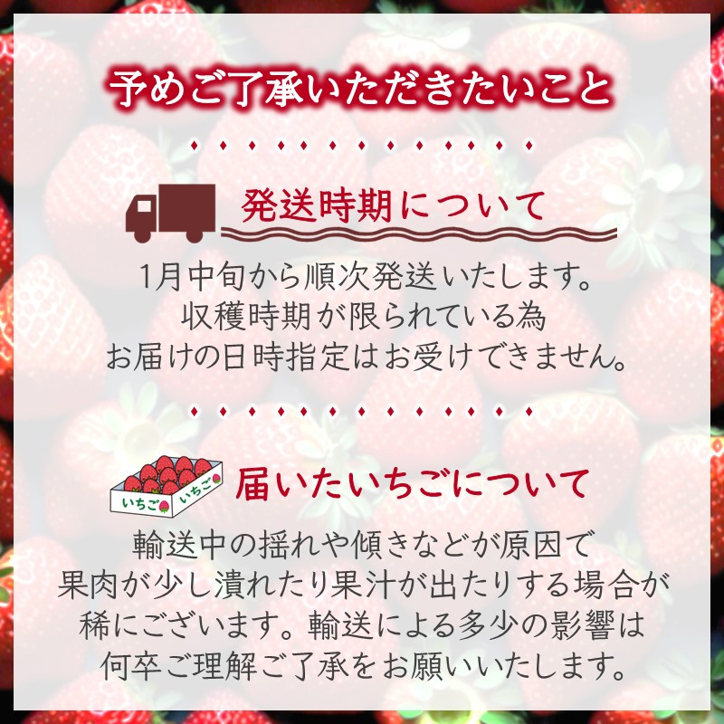 ※お送りする品種は生育状況により異なります。いちごの品種と粒数はお任せいただきます。