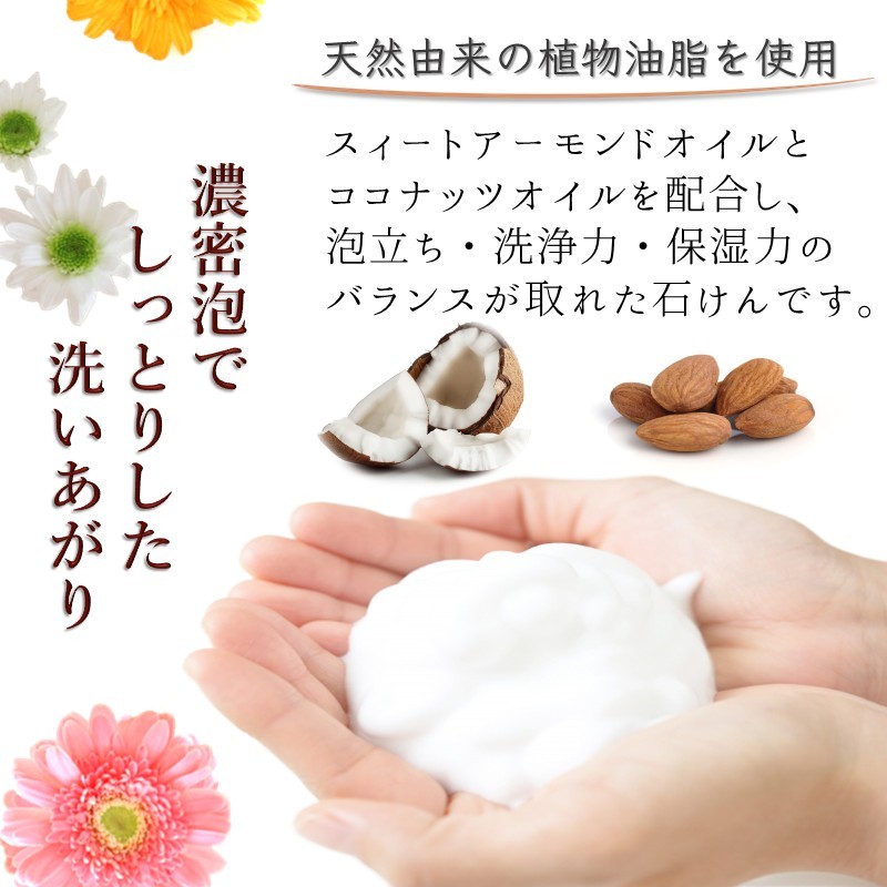 敏感肌の方や赤ちゃんからご高齢の方まで幅広い層の方に安心してご使用いただける石けんです。