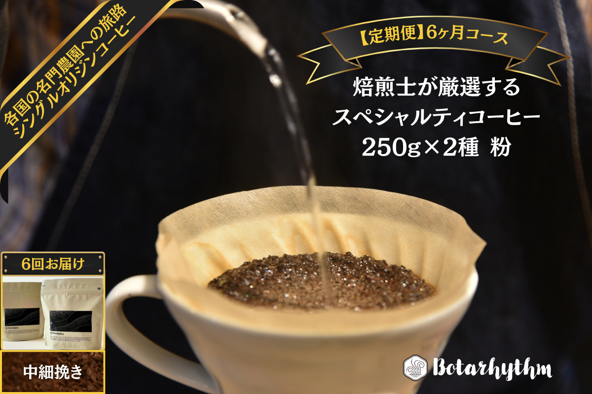 | 容量 | 下記を6ヶ月連続でお届けします。 【粉】スペシャルティコーヒー 焙煎士セレクト 250g×2種 |