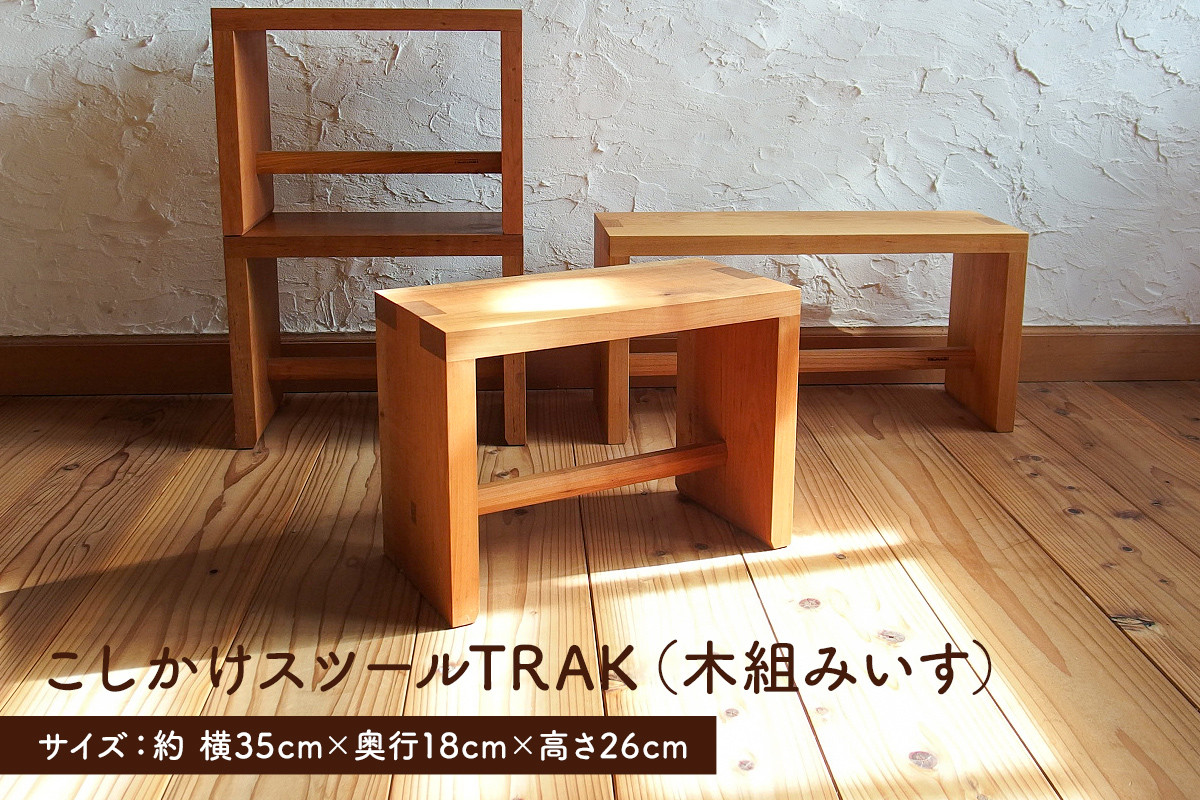 | 容量 | こしかけスツールTRAK 1脚 約横35cm×奥行18cm高さ26cm 仕上げ:オイルフィニッシュ 原材料:山桜 |