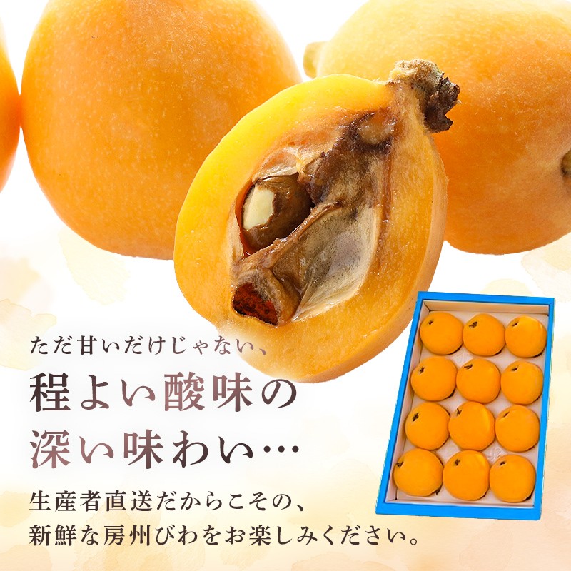 【先行受付 2026年5月中旬~6月中旬発送予定】【数量限定】生産者直送 ジューシー房州びわ(2Lサイズ以上)化粧箱入り mi0057-0002 【果物 フルーツ デザート おやつ 枇杷 ビワ 国産 特産品 贈答】
