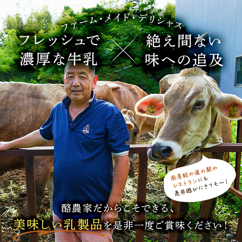 近藤牧場乳製品(牛乳900ml×2、モッツァレラ100g×2、リコッタ18…16,500 円 『雑誌anan(No.2370)』でご紹介いただきました! ミルクマイスター®高砂さんが厳選するお取り寄せ可能な牧場直送”クラフトミルク”8選でご紹介いただきました。 牛からこだわりました。 ブラウンスイスジャージー、ガンジーホルスタイン等の厳選された良質な生乳を使用し自社工場にて低温殺菌ノンホモ牛乳に仕上げました。 鴨川市のお菓子工房で、製造されているバウムクーヘン(いちご、れもん、いも、チョコレート味など)の原料としても使用されており、スイーツであれば和菓子、洋菓子を問わずおいしさを発揮する牛乳です。おかき、干物、魚介、メロンなどのフルーツ以外に、日本酪農発祥の地「南房総市」からお届けする牛乳をご賞味ください。 モッツァレッラチーズは毎朝牧場で搾乳された新鮮な牛乳から作られる牛乳の香りが残るミルキーでさわやかなフレッシュチーズです。手作りだからこそ実現できる食感を是非お楽しみください。 モッツァレッラチーズと途中までは同じ工程で作られるリコッタチーズ。滑らかでクリーミーなリコッタチーズは、デザートにももちろん合いますが、青ねぎを刻んでポン酢しょうゆで頂くと、ワインやビールのおつまみに最高です!! 道の駅富楽里とみやまの2階にある直営ショップの人気のお品です。 ※画像はイメージです。 ※賞味期間:冷蔵5日 【原材料】 ノンホモ牛乳:生乳100%(成分無調整) モッツァレラチーズ:生乳、食塩 リコッタチーズ:生乳、クエン酸 【低温殺菌 ジャージー ミルク 道の駅 チーズ おつまみ リコッタ モッツァレラ ひるおび 金賞 ESSEふるさとグランプリ2022 銘品部門 金賞受賞】 【地場産品基準】 1号 市内の自社牧場で採れた生乳を使用し、市内自社加工場にて製造されたもの - 冷蔵便