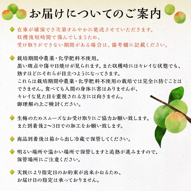 ※生梅のためスムーズなお受け取りにご協力お願い致します。また到着後2~3日での加工をお願い致します。