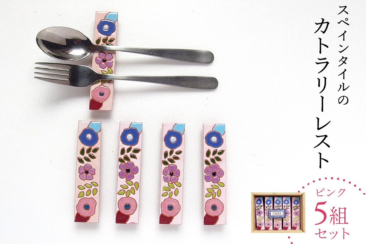 食卓が明るくなるスペインタイルの色鮮やかなカトラリーレストピンク5組セットです。