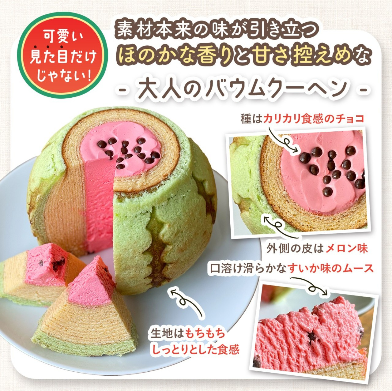 まるで本物のすいかとメロン! 米粉で作ったすいかとメロンのバウムクーヘン