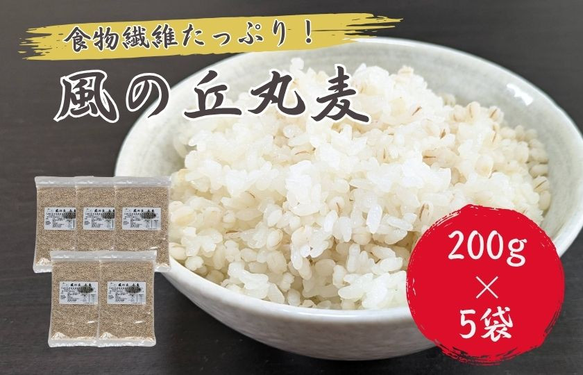 風の丘丸麦 1kg(200g×5袋) / 丸麦 麦 むぎ 大麦 雑穀 雑穀米 麦ごはん 麦みそ 麦味噌 食物繊維